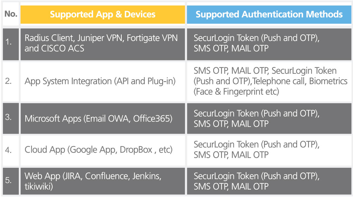 - Apply unified management and strong authentication for multiple app systems by creating apps in the SecurLogin system